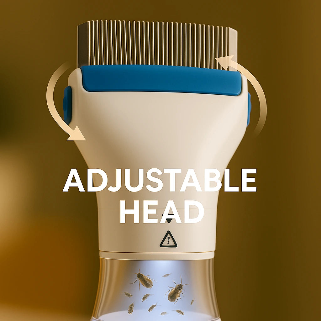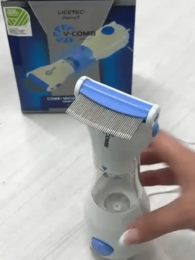 Solo conéctalo, ajusta el ángulo del cabezal y peina lentamente desde la raíz hasta las puntas. Los piojos y liendres se aspiran directamente al filtro desechable.